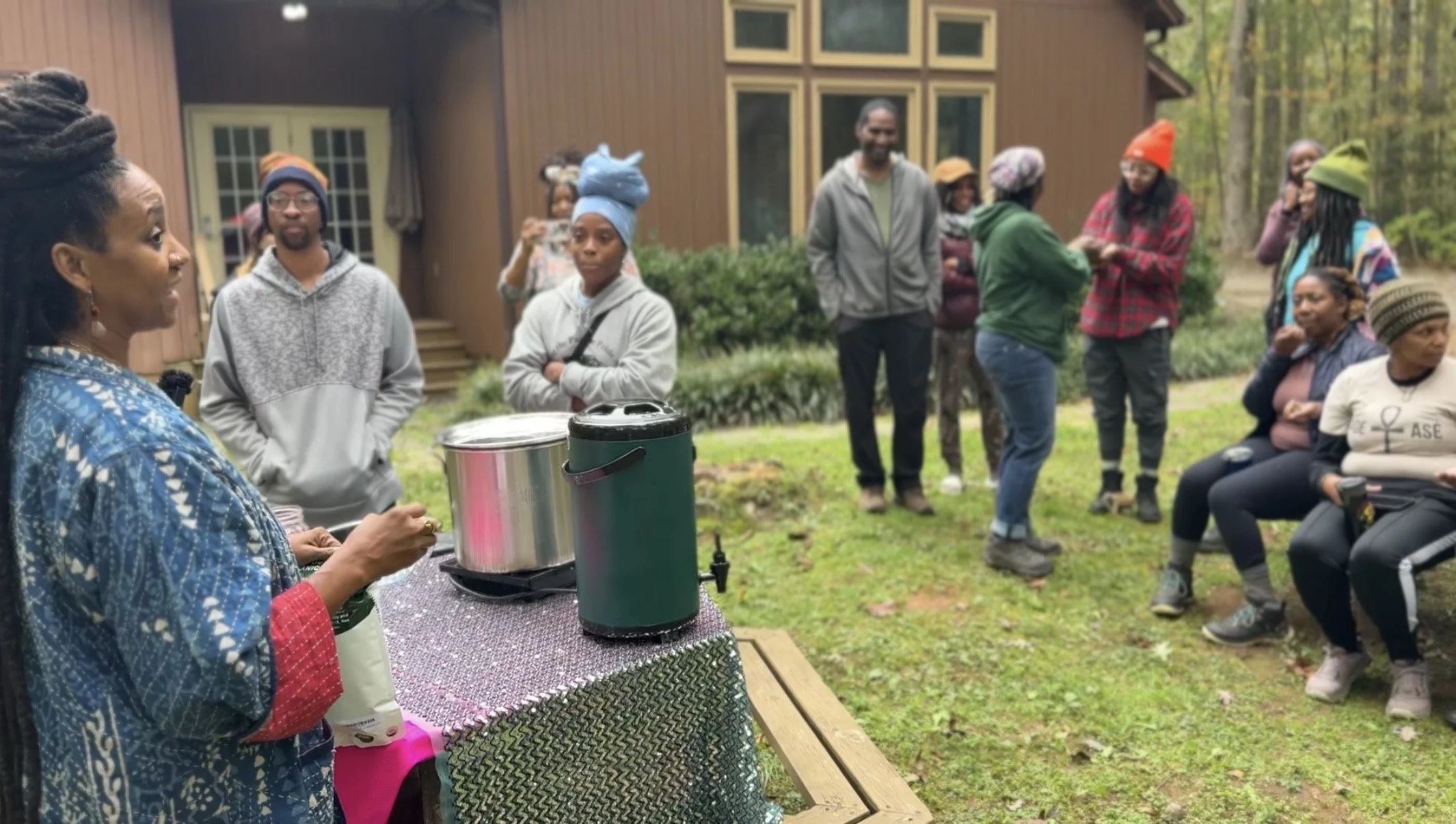 Our mission is to create and maintain an intimate space where black people can celebrate and explore our contributions and participation in the folkways of this land, including music, plant medicine, art, bush craft, and other nature aligned activities.